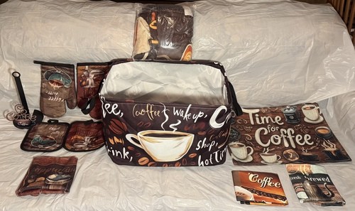 ☕ 6-pc Kitchen Decor Coffee Set (2 Dish Towels, 2 Pot Holders, 2 Oven Mittens)