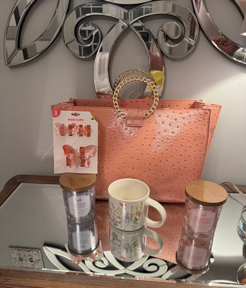 Together, this peachy outfit-and-purse combo creates a fresh, fashionable look that’s perfect for any occasion.